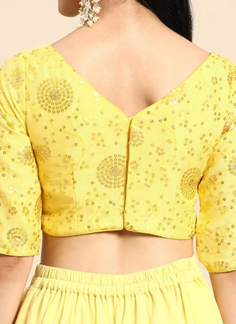 Yellow Chinon Embroidered Blouse Festive Wear