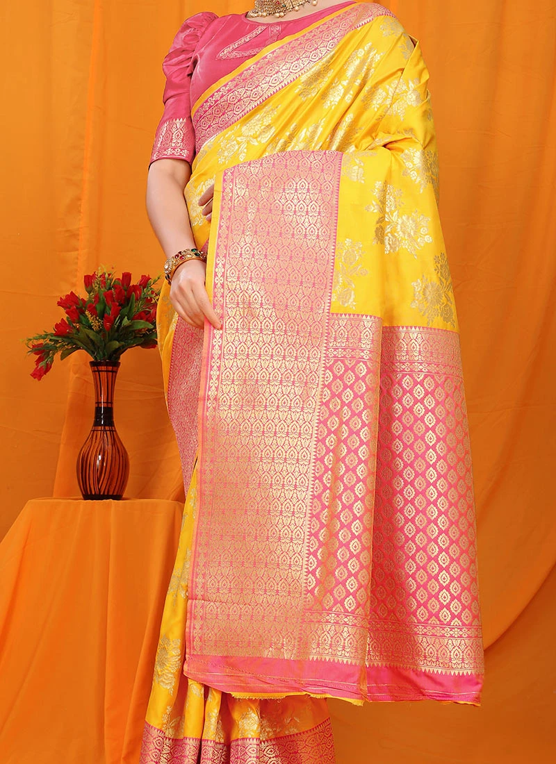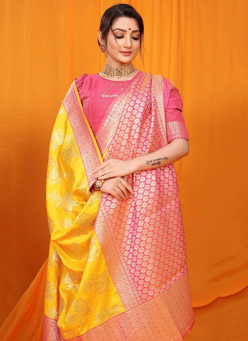 Yellow Color Patola Silk With Zari Weaving Work Saree Party Wear