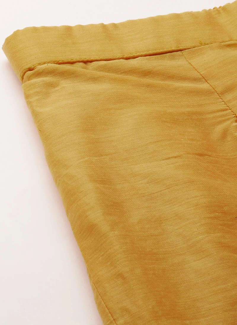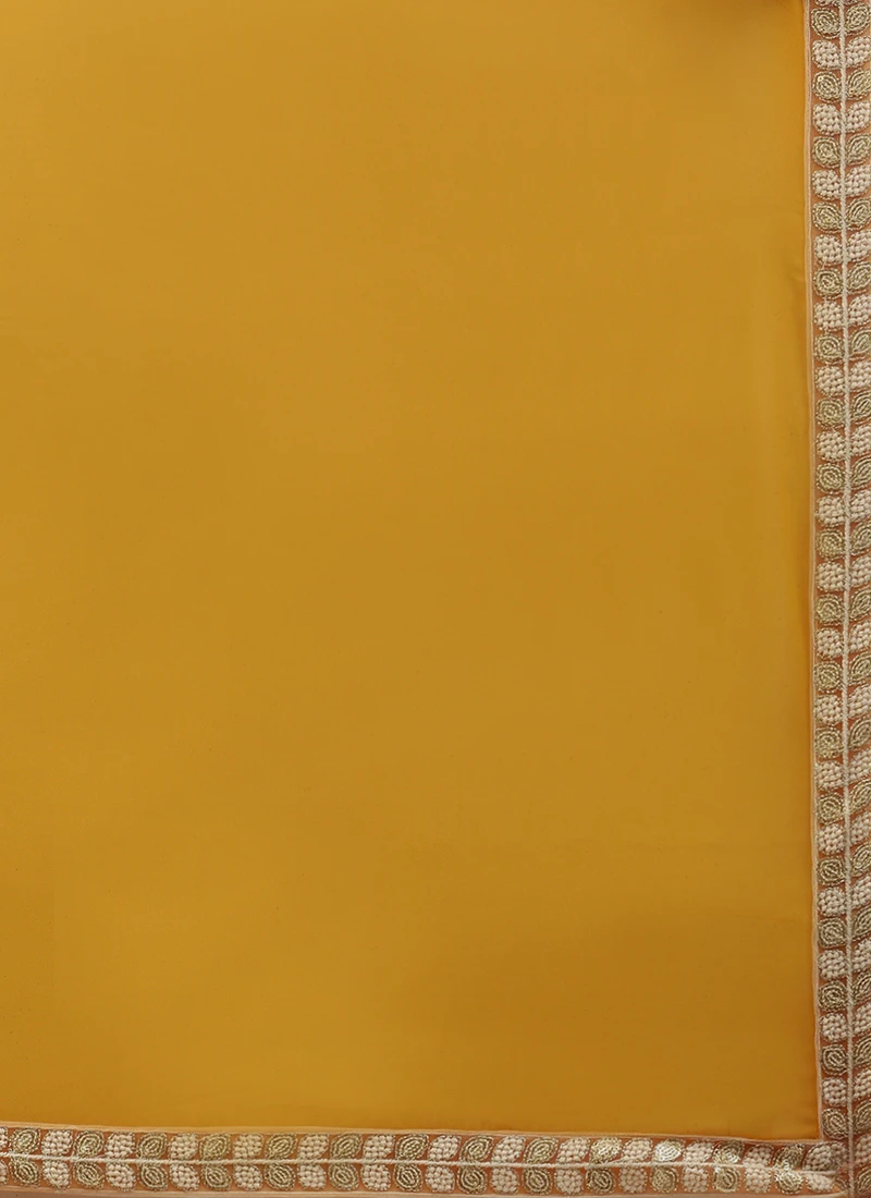 Presenting yellow net embroidered with yellow georgette anarkali set, features a yellow net embroidered natural waist yoke front and back normal v neck, georgette full sleeve with embellished yellow net embroidered, side zip opening with yellow georgette gathers flare till ankle length. It’s paired up with mustard yellow cotton narrow straight pant with slit and waist band type band with elastic till ankle length. Comes with yellow georgette dupatta with embellished trim. .