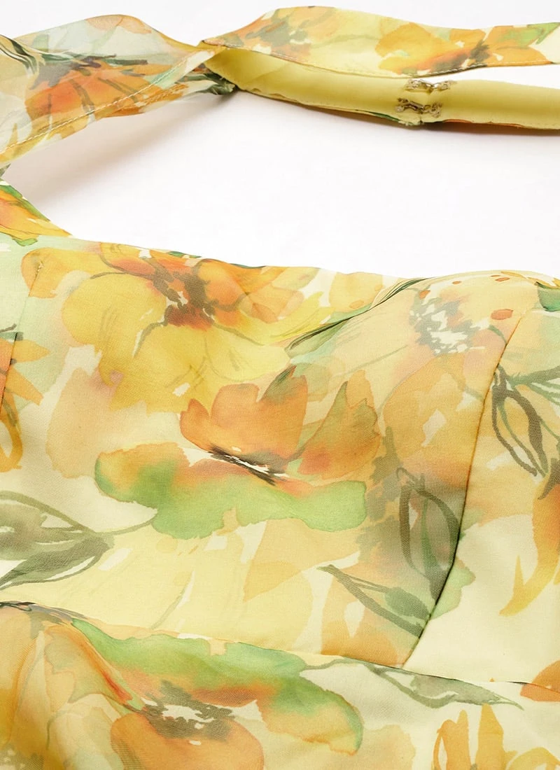 Yellow Organza Mini Dress Party Wear