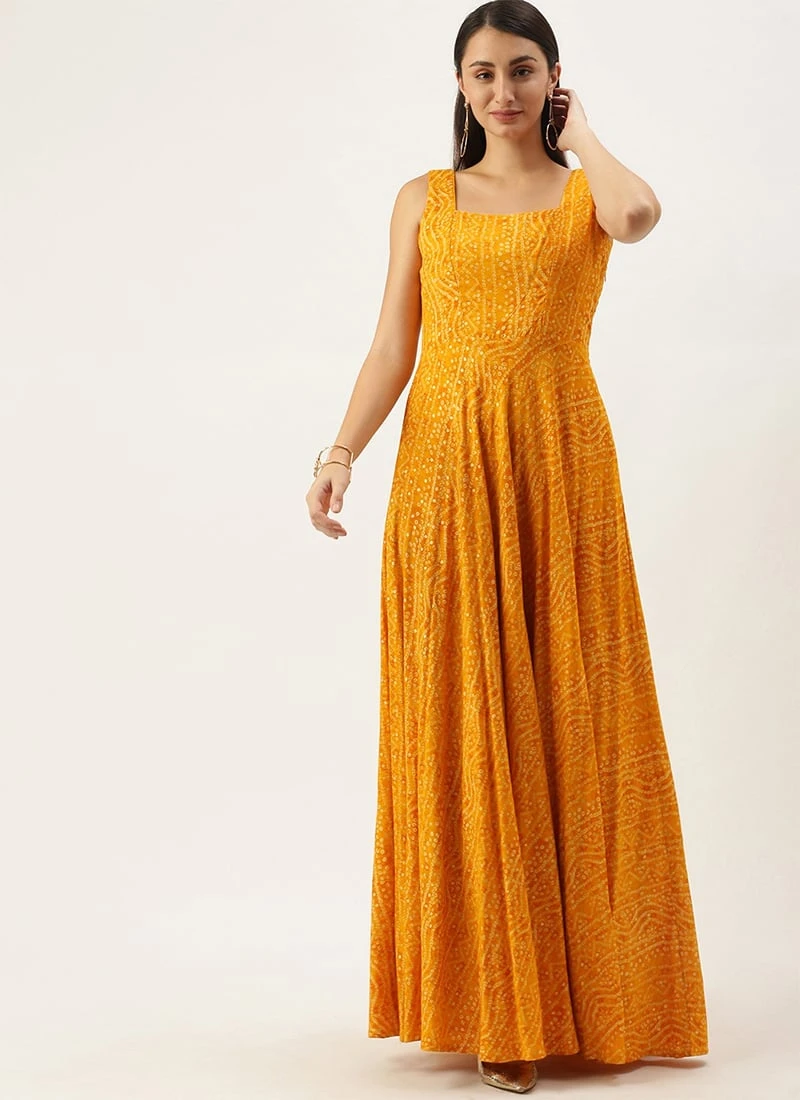 • Pink Bandhani Printed Rayon Strap Neck Dress Festive Wear -ZariGrace Shop Pink Bandhani Printed Rayon Strap Neck Dress DRBS02303755 l