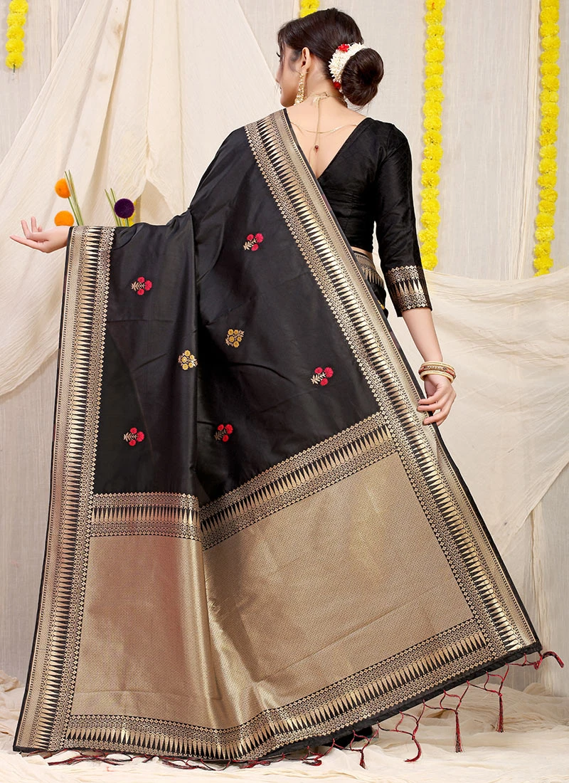 Zari Weaving Black Color Patola Silk Saree Festive Wear